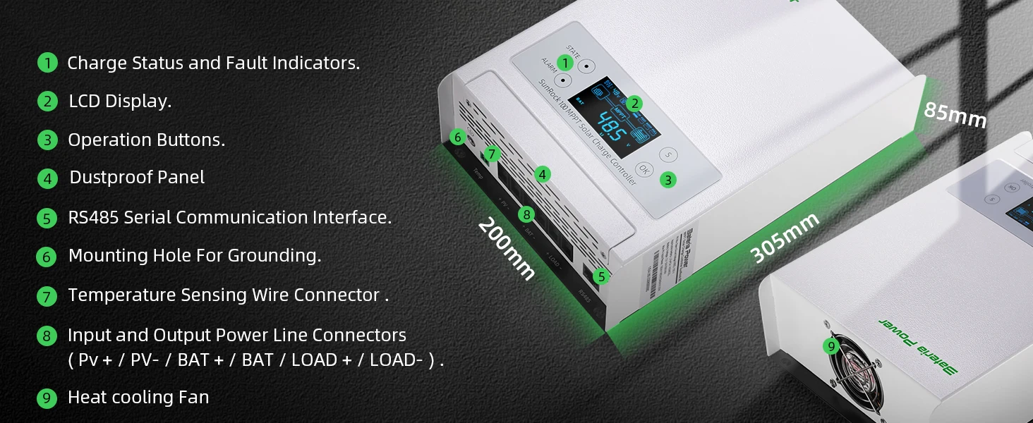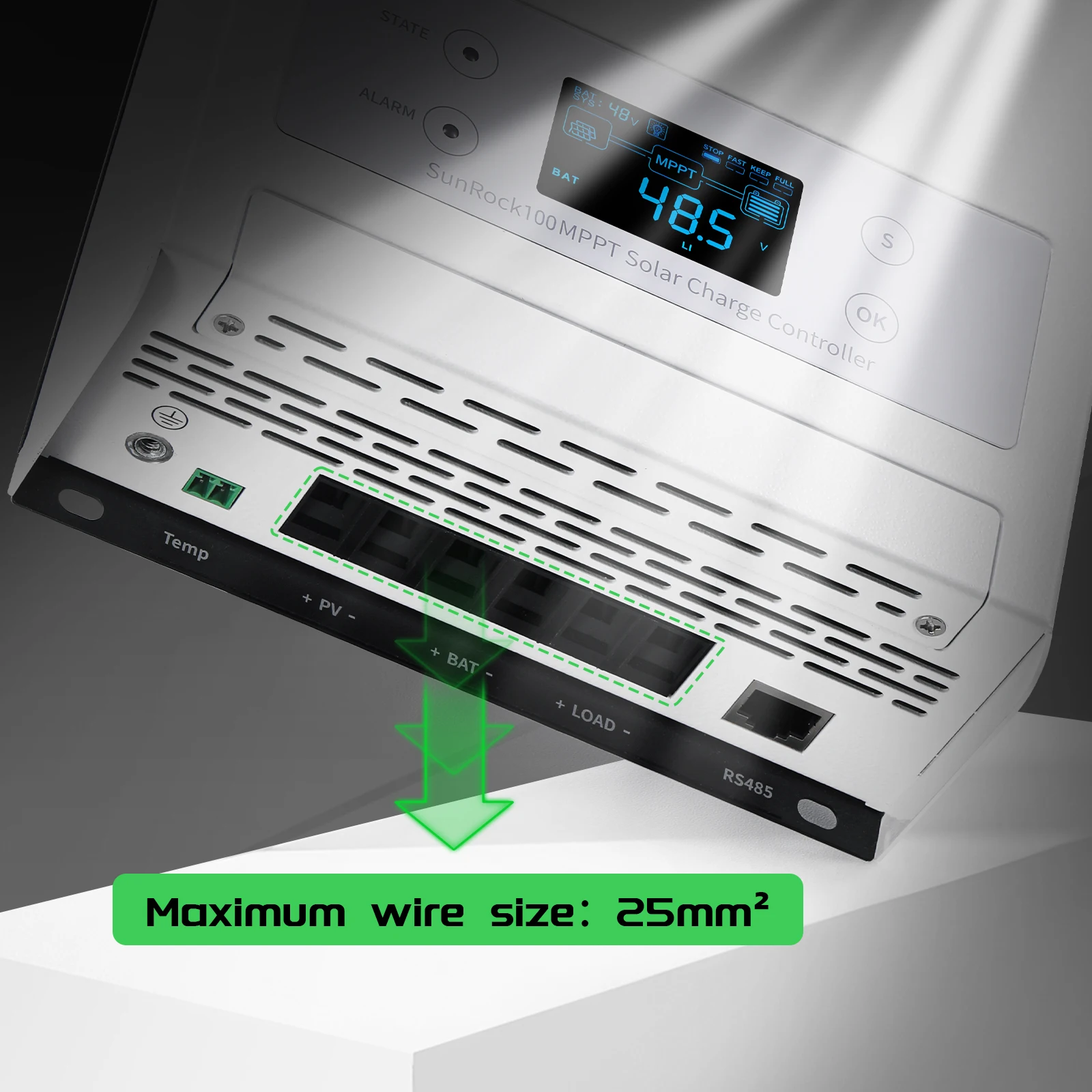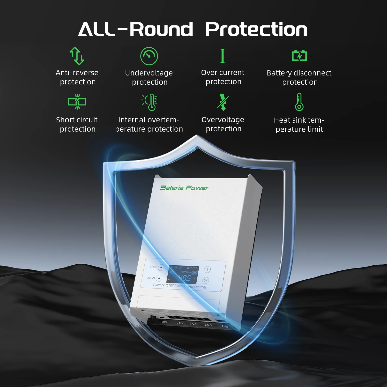 【100A MPPT Solar Charge Controller】:Upgraded dust-proof panel design ensures that the wiring is aesthetically pleasing while avoiding dust entry. The removable dust-proof panel can be removed before wiring and reattached after wiring for protection.