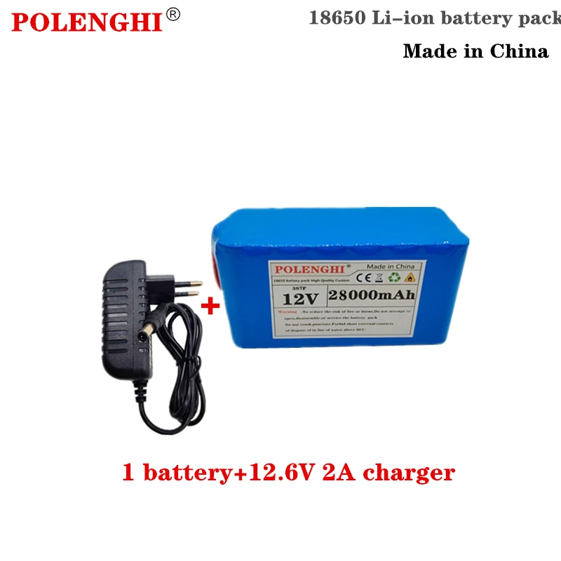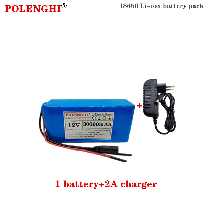 100% brand new 18650 12V battery pack with large capacity 12V 30Ah 18650 lithium battery protection board 12V 30000mah capacity+2A charger