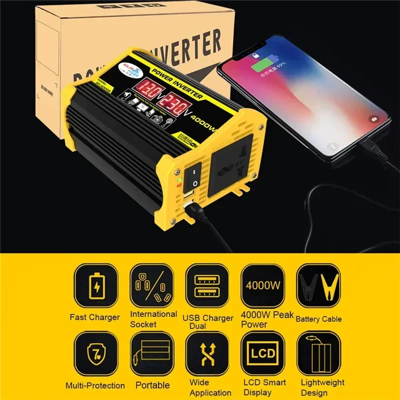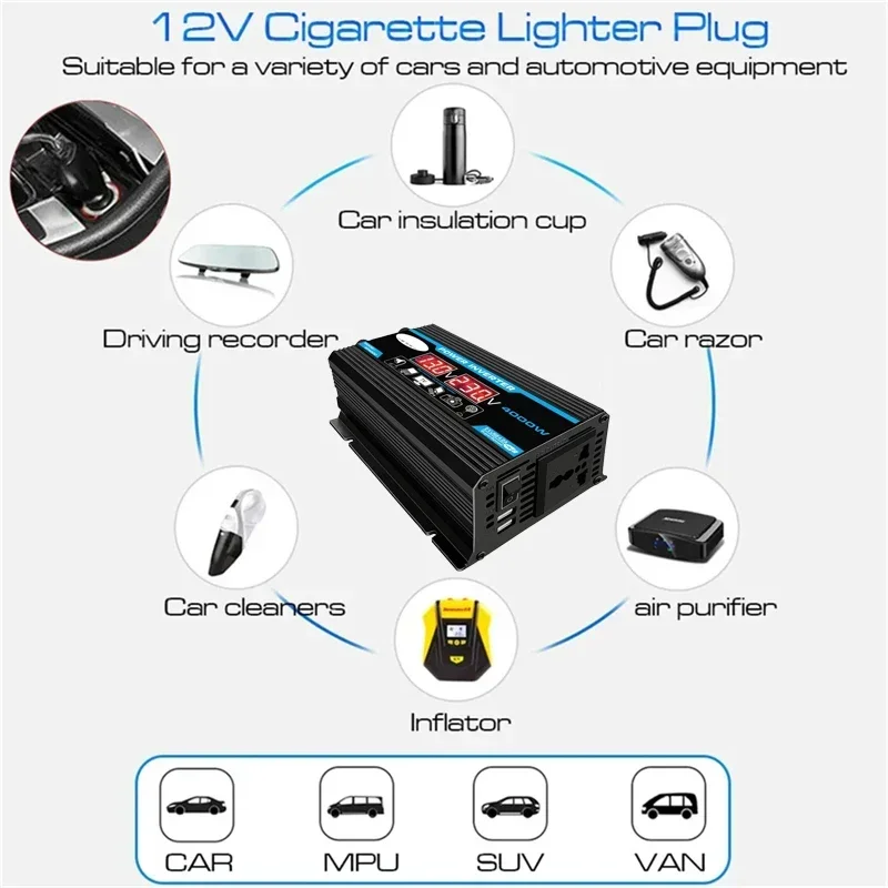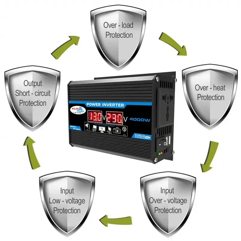* 4000W vehicle power inverter, convert DC 12V to AC 110V/220V, the output voltage is constant and accurate.