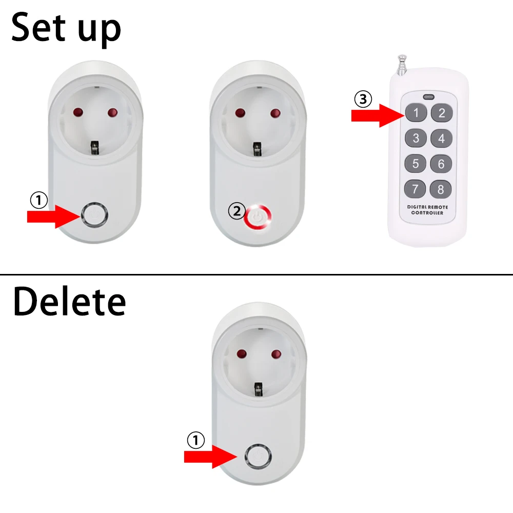 4.Family share.One remtoe can control manyplugs.One plug can be almost10pcsremotes controlled.
