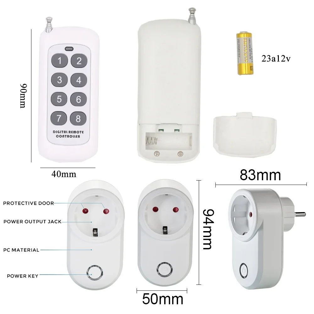 - Features: Rf 433mhz EU FR Socket Outlet Plug with wireless remote control