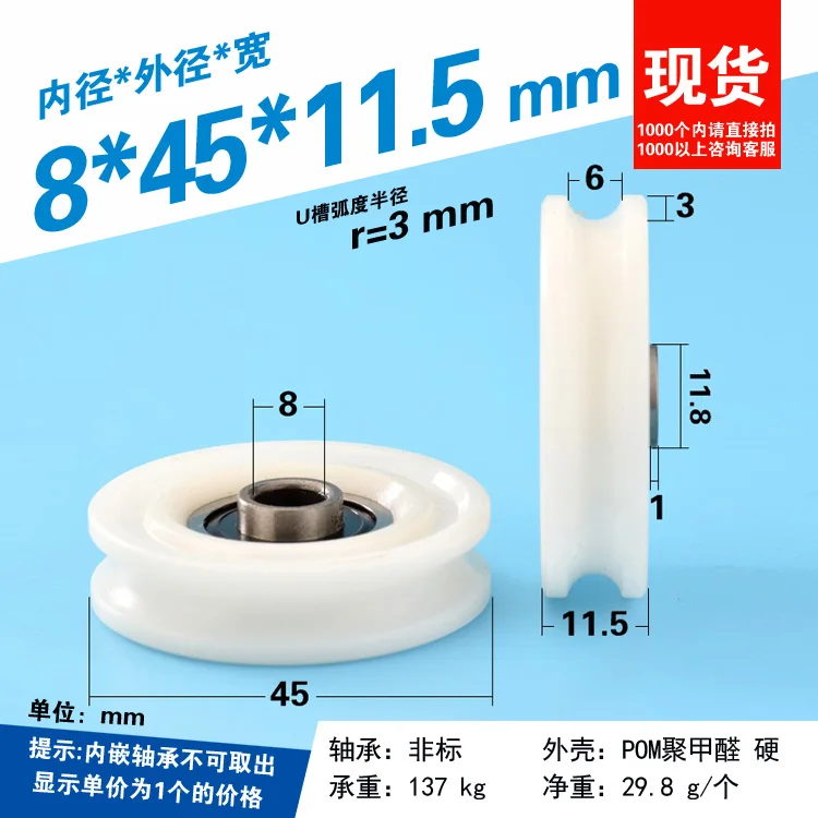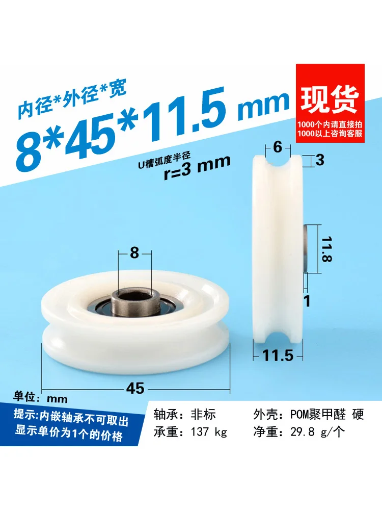 1Pc slotted U-shaped groove door and window pulley wrapped with plastic bearing wheel PA66 nylon guide wheel 8x45x11.5mm