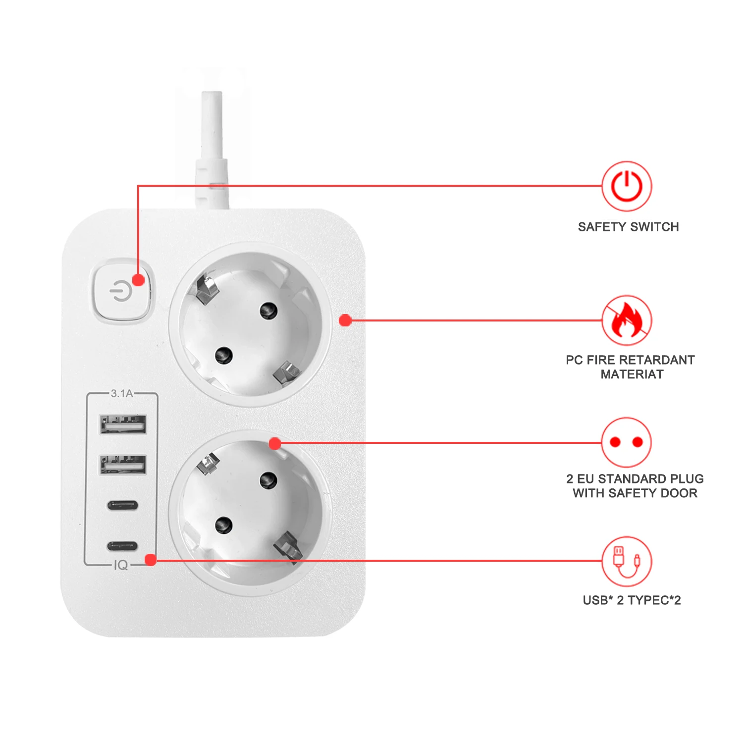 Be the first to review “2 hole Eu plug power strip with 2 USB and 2 Type-C,2m extension power cord desk socket used for travel”