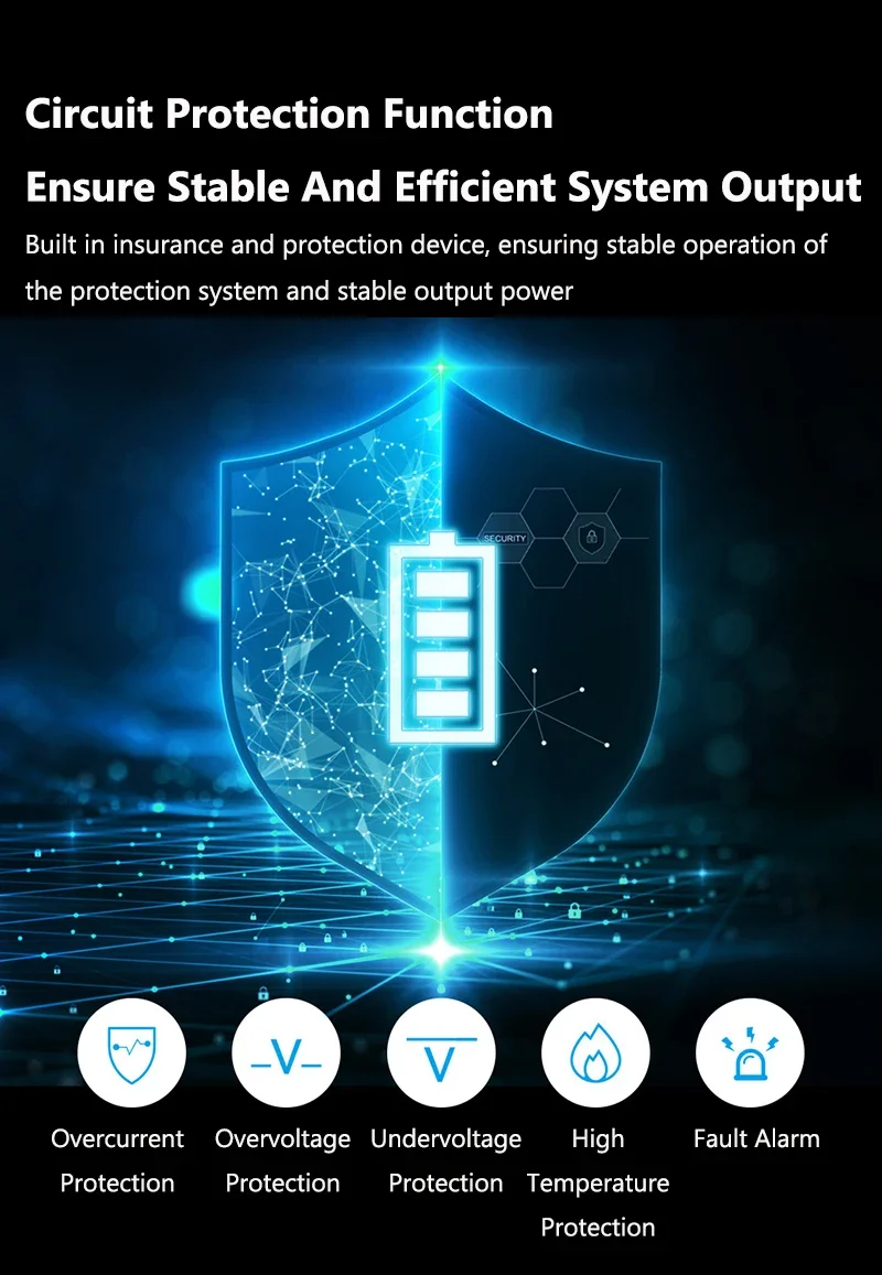 * Circuit protection function, built-in insurance and protection device to protect the system to work stably and output power stably.