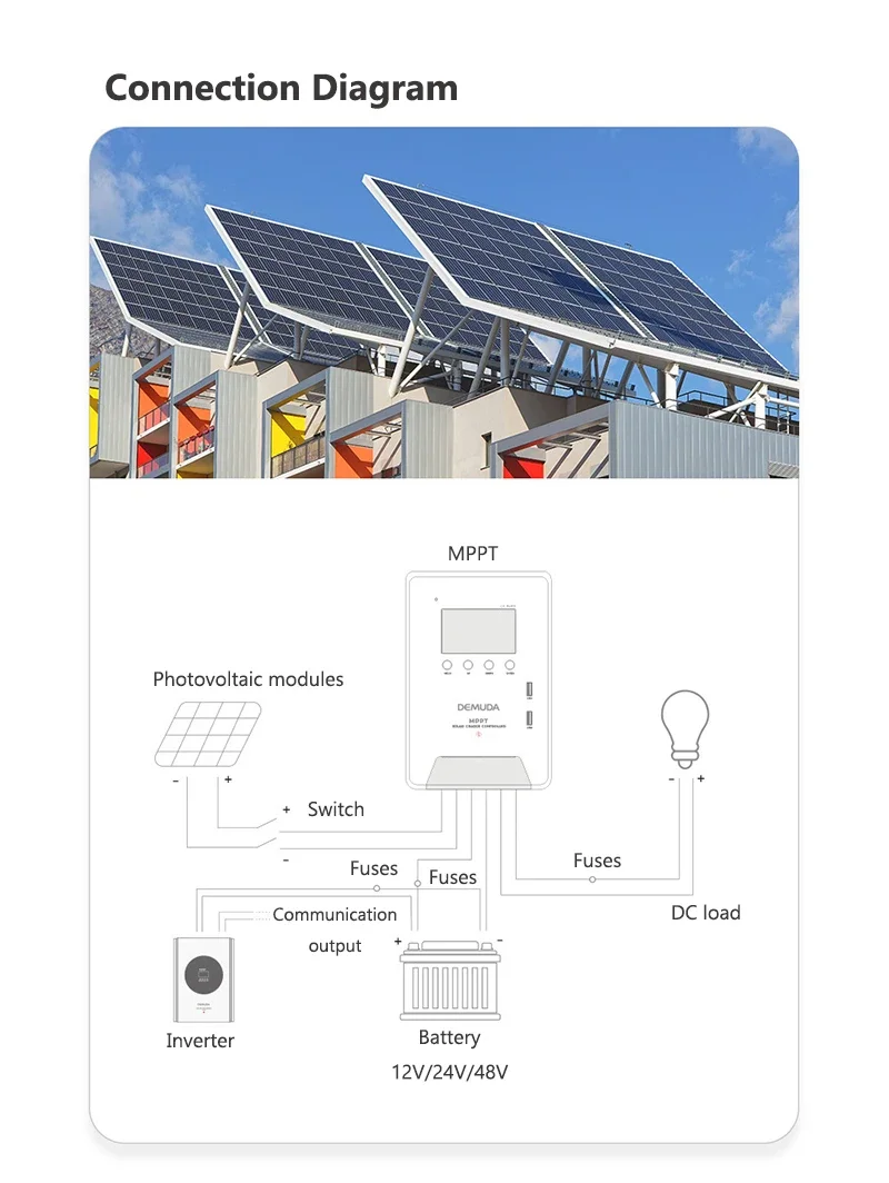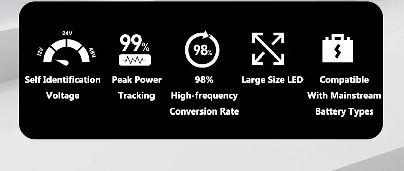 * Self-identification system voltage, 12V/24V/48V system automatic identification, compatible with more battery types.