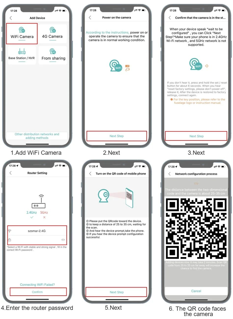 The camera only support 2.4G HZ Wifi, don’t support 5G HZ WiFi