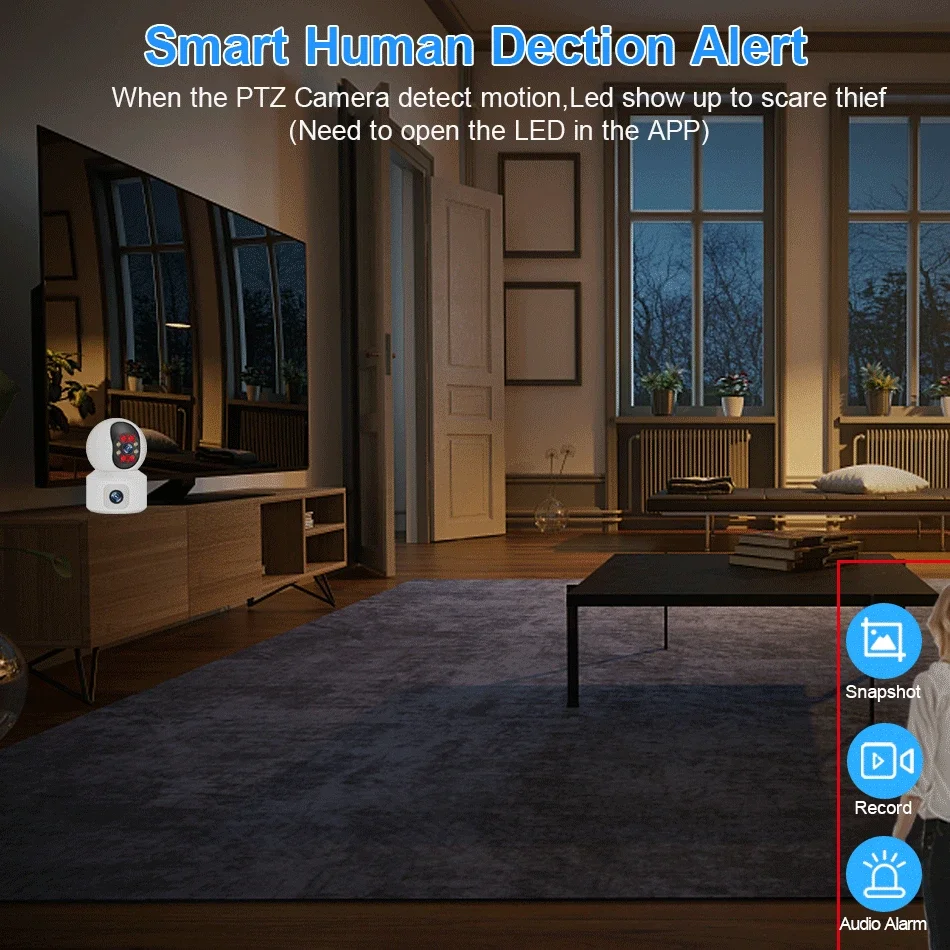 • Smart Dual Light Modes: Full-color mode,infrared mode,double-light alert mode