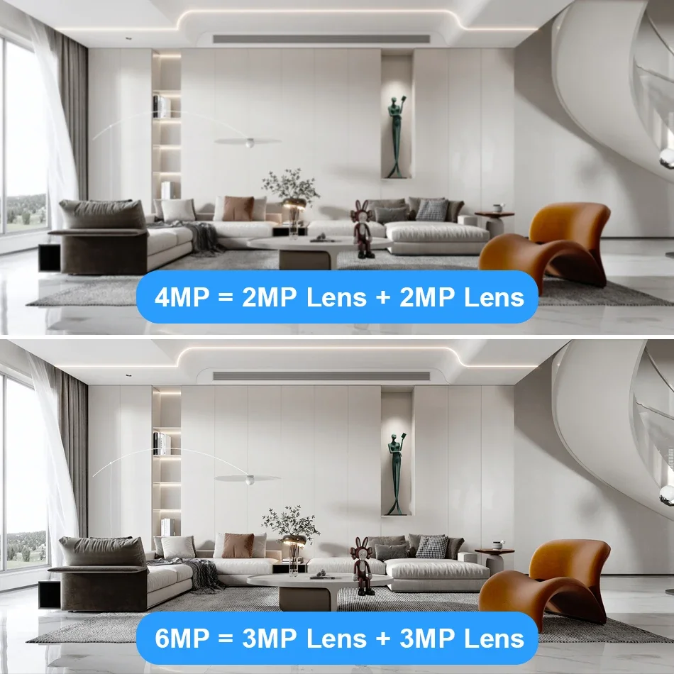 • 6MP Pixel Camera: 3MP FIXED LEN + 3MP PTZ LEN
