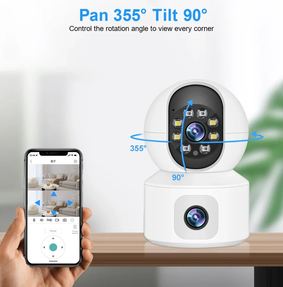 One lens can be rotated up, down, left, and right and played in real time, and one lens is a fixed shot of the monitoring screen of the corresponding area. One screen can watch the real-time images of 2 lenses at the same time