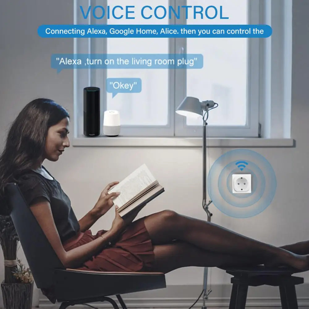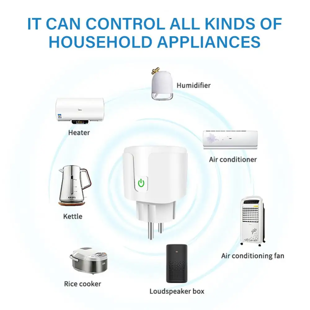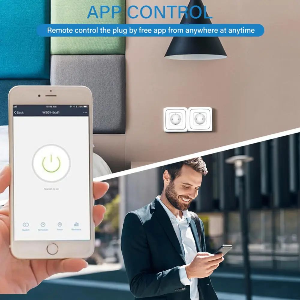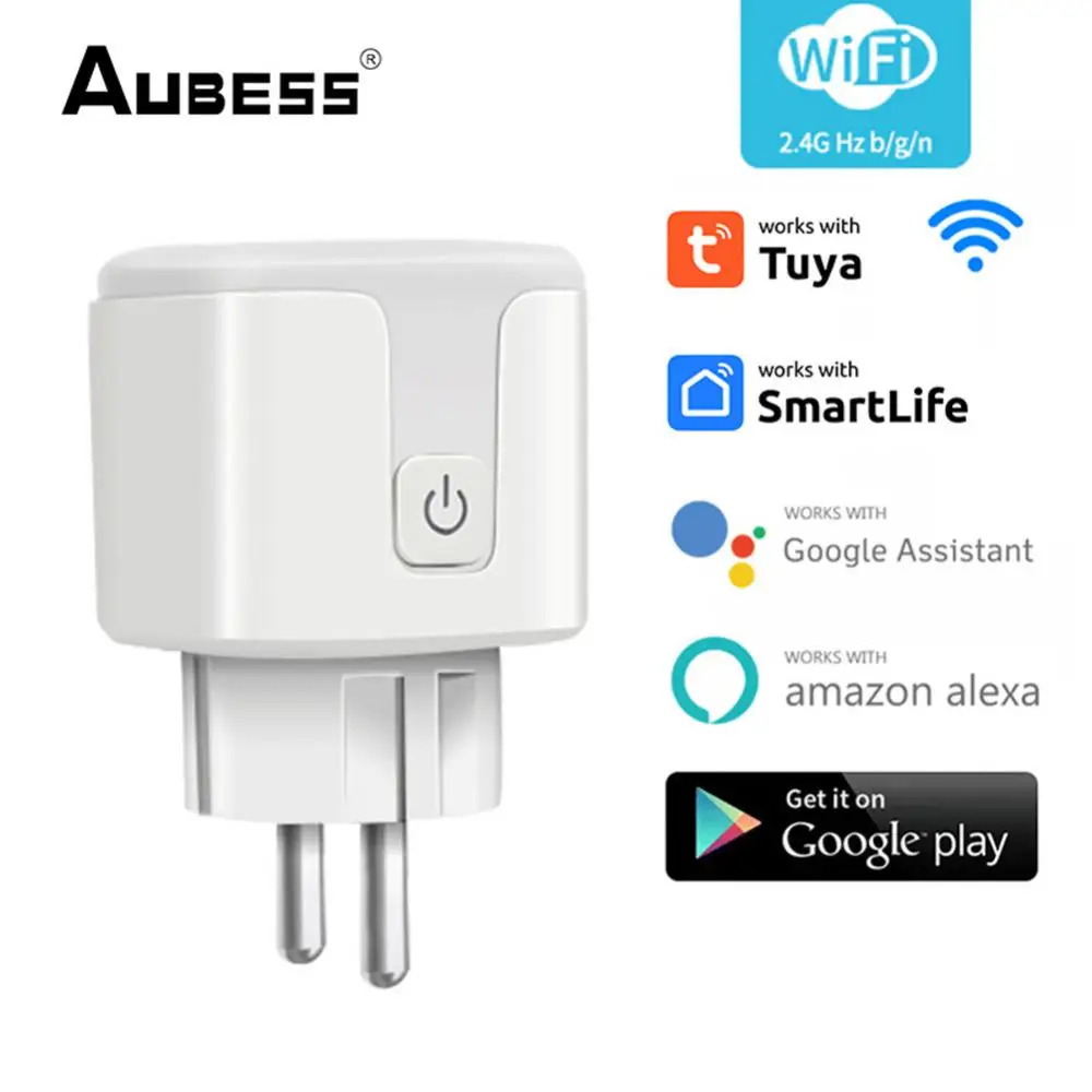 Aubess Tuya WiFi 16/20A Smart Plug With Power Monitor EU Wireless Socket Timing Function Voice Control via Alexa Google Home
