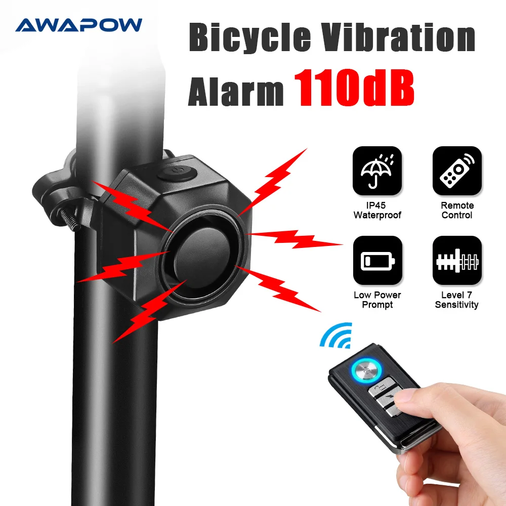 Awapow Bicycle Alarm Remote Control Bike Anti Theft Alarm USB Rechargeable Motorcycle Bicycle Detector Alarm