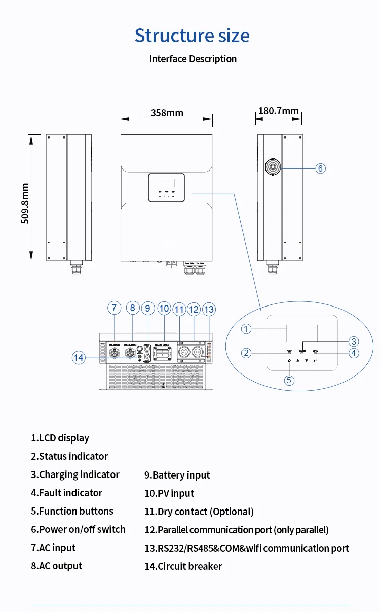 • Communication Interface: RS232/RS485CAN/Dry contact