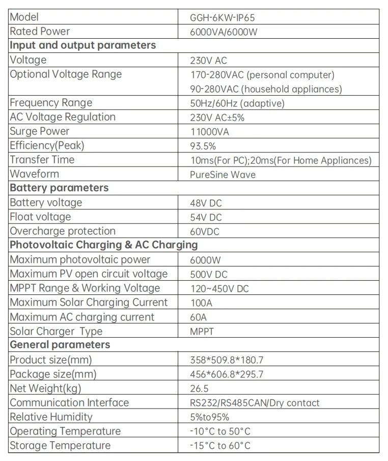 • Max. PV Array Power: 6000W