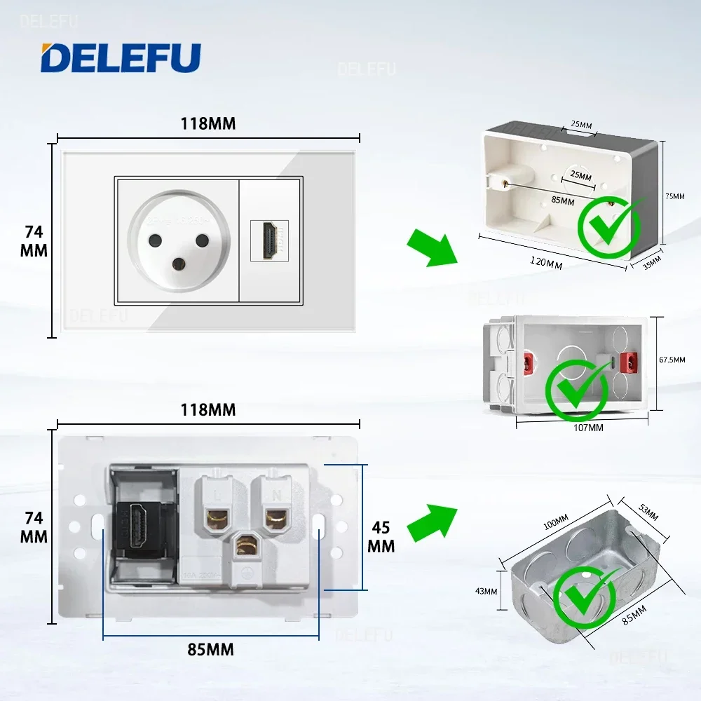 Be the first to review “DELEFU White Tempered Glass Israel USB Type C Fast Charging Wall Socket Light Tuya Wifi Smart Switch Sat TV Tel Doorbell Curtain”