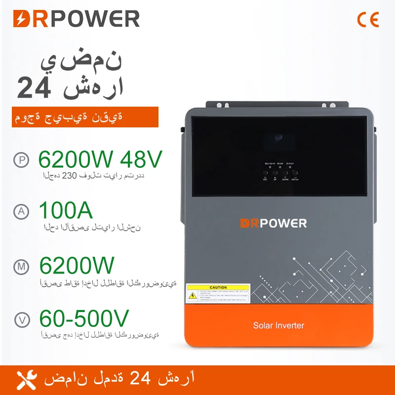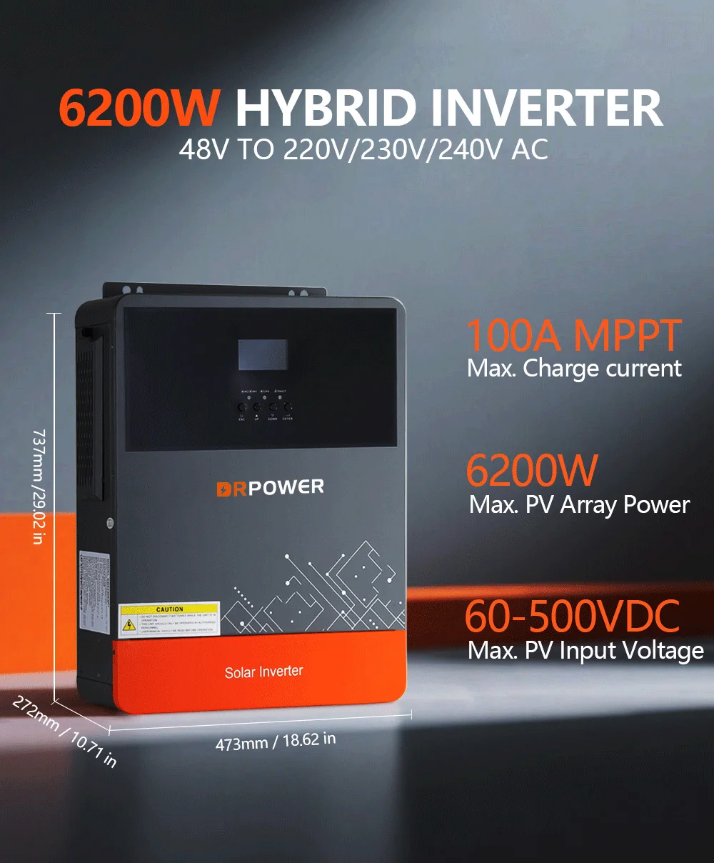 DRPOWER 6200W Hybrid Solar Inverter 100A MPPT Solar Charger Controller 48V Battery to 230VAC Max PV 500V Support WIFI