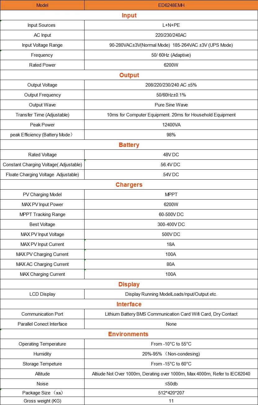 Controller 48V Battery to 230VAC Max PV 500V Support WIFI