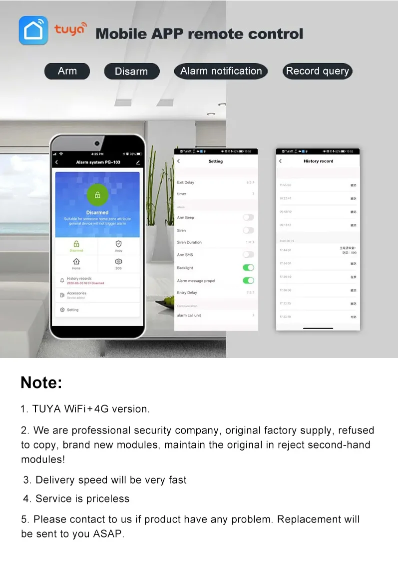 - Alarm Type: The Alarm,Apps Control,PSTN