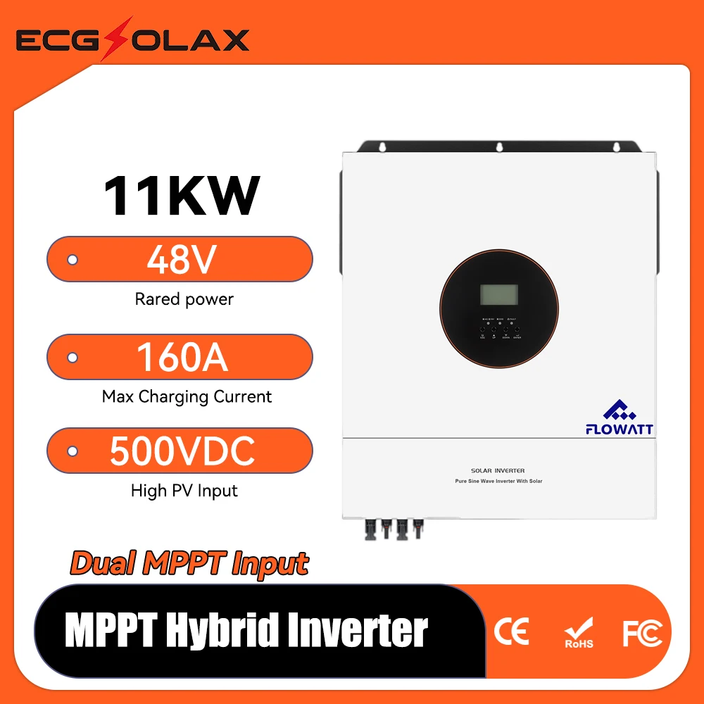 ECGSOLAX 11KW Solar Hybrid Inverter 230Vac 48V With Dual Input MPPT 160A Charging Controller 11000W Hybrid Solar Inverter BMS