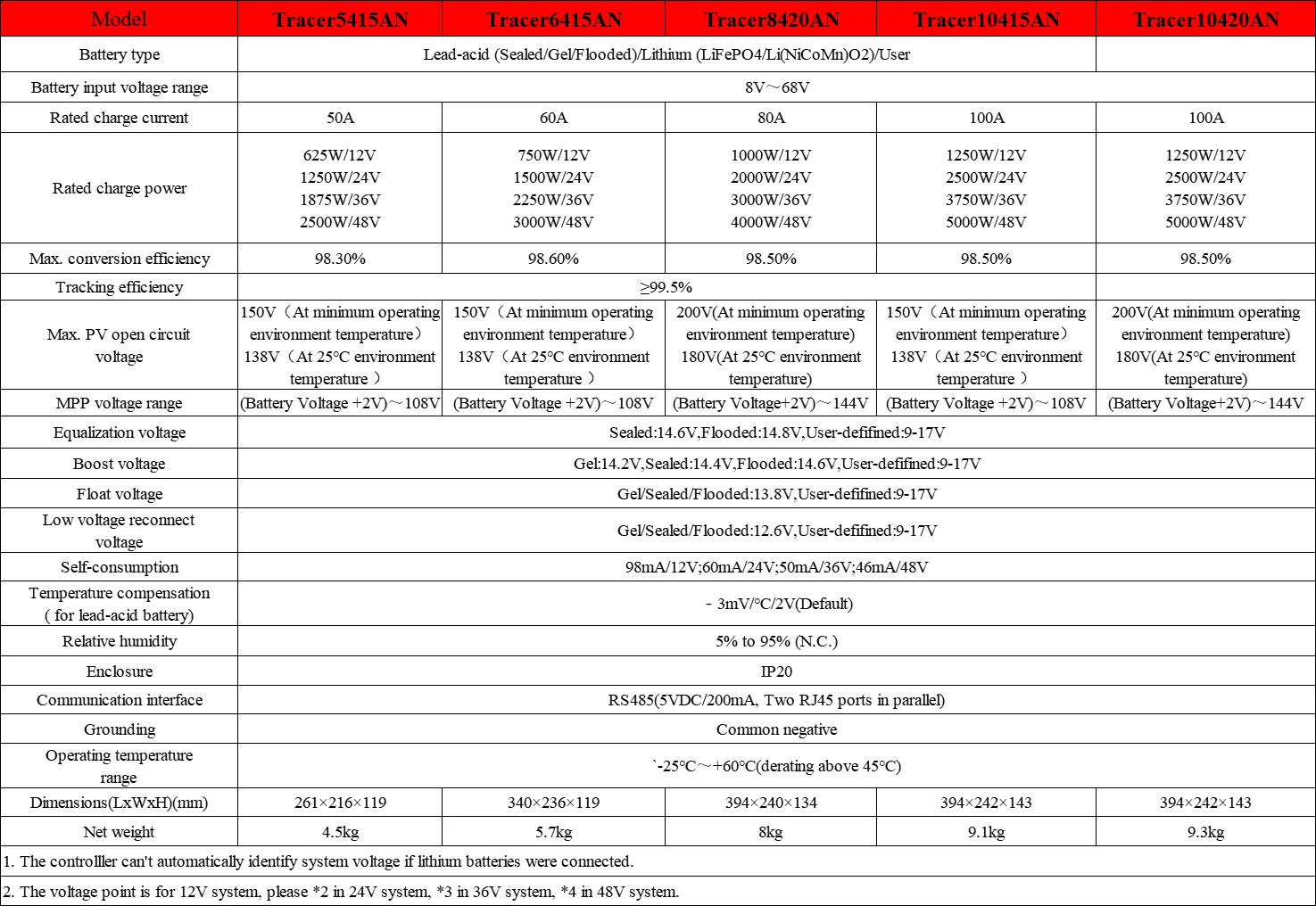• System voltage: 12V 24V 36V 48V