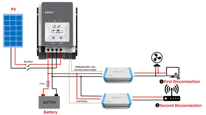 • To set the first and the second disconnection voltage of load by the software
