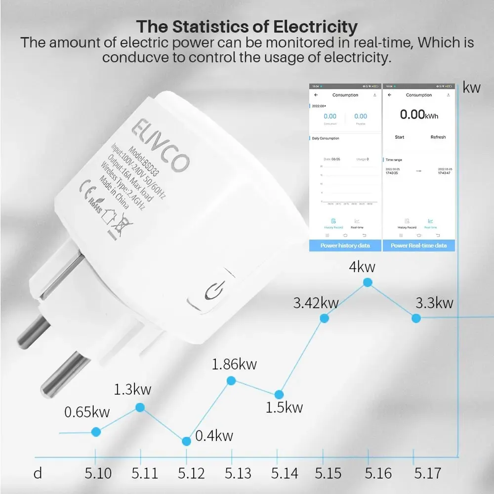 This smart power plug can provide a real-time power consumption meter, and you can know real-time reports on how much energy your appliances consume.
