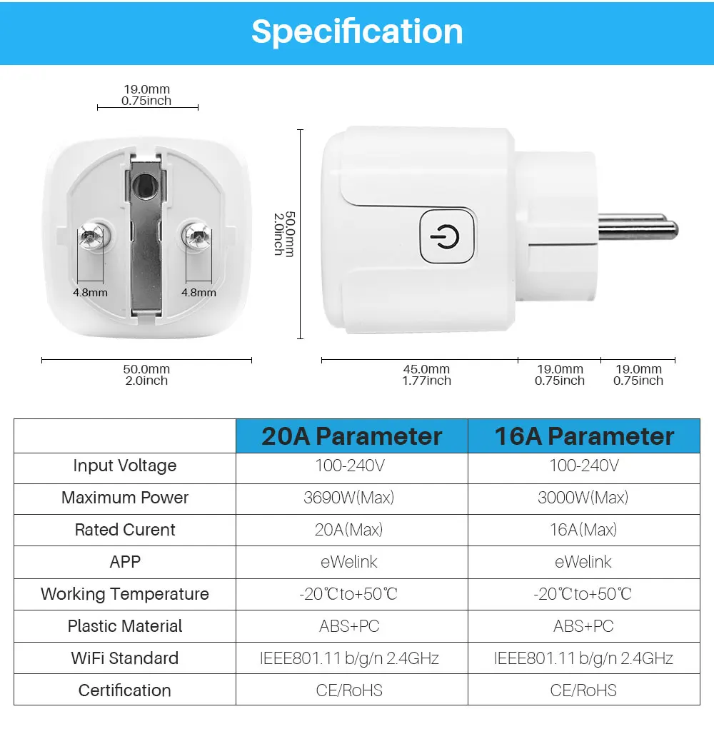Smart WiFi Plug(EU) Specification-20A Version