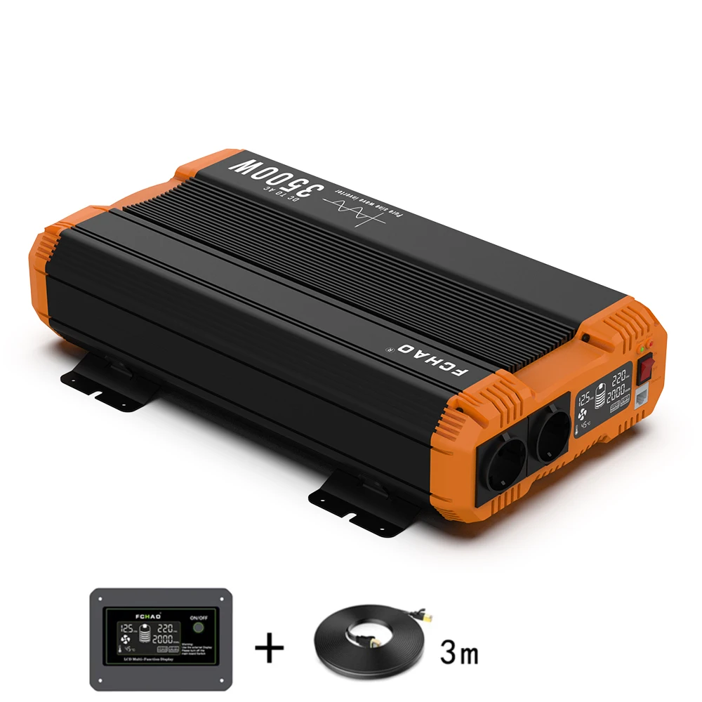 Fchao Converter 12/24V to 220V, 3500W Continuous Power Pure Sine Wave Car inverter, LCD Display, Remote Control for Home and RVs