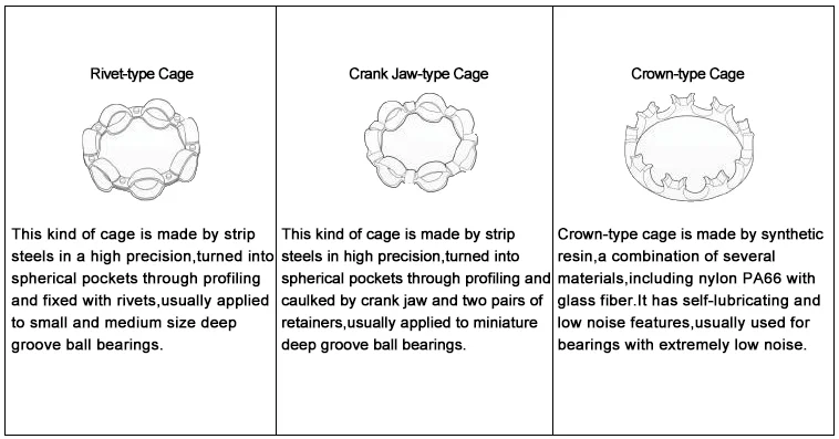 ZYSL Bearings offers the following kinds of cages for deep groove ball bearings: