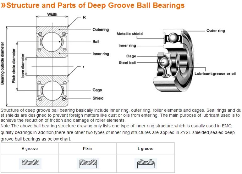 Deep groove ball bearings can be used for transmission, instrumentation, motors, appliances, internal combustion engines, transportation vehicles, agricultural machinery, construction machinery, engineering machinery , roller skate style , yo-yo , precision instruments, low noise motors, automobiles , motorcycles vehicles.