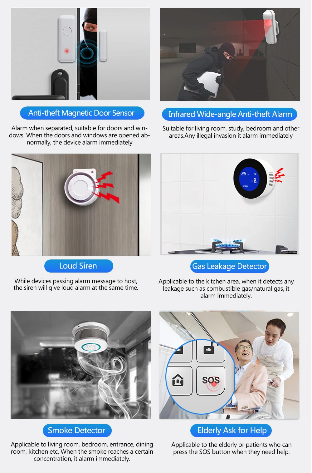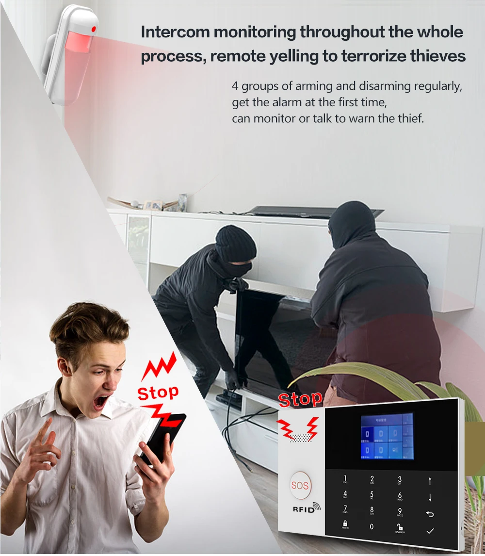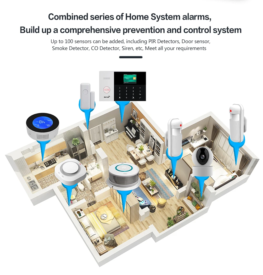 GSM WIFI Alarm System Tuya Smart Life APP Home Smart Security Protection Wireless Security Alarm House System with ALexa