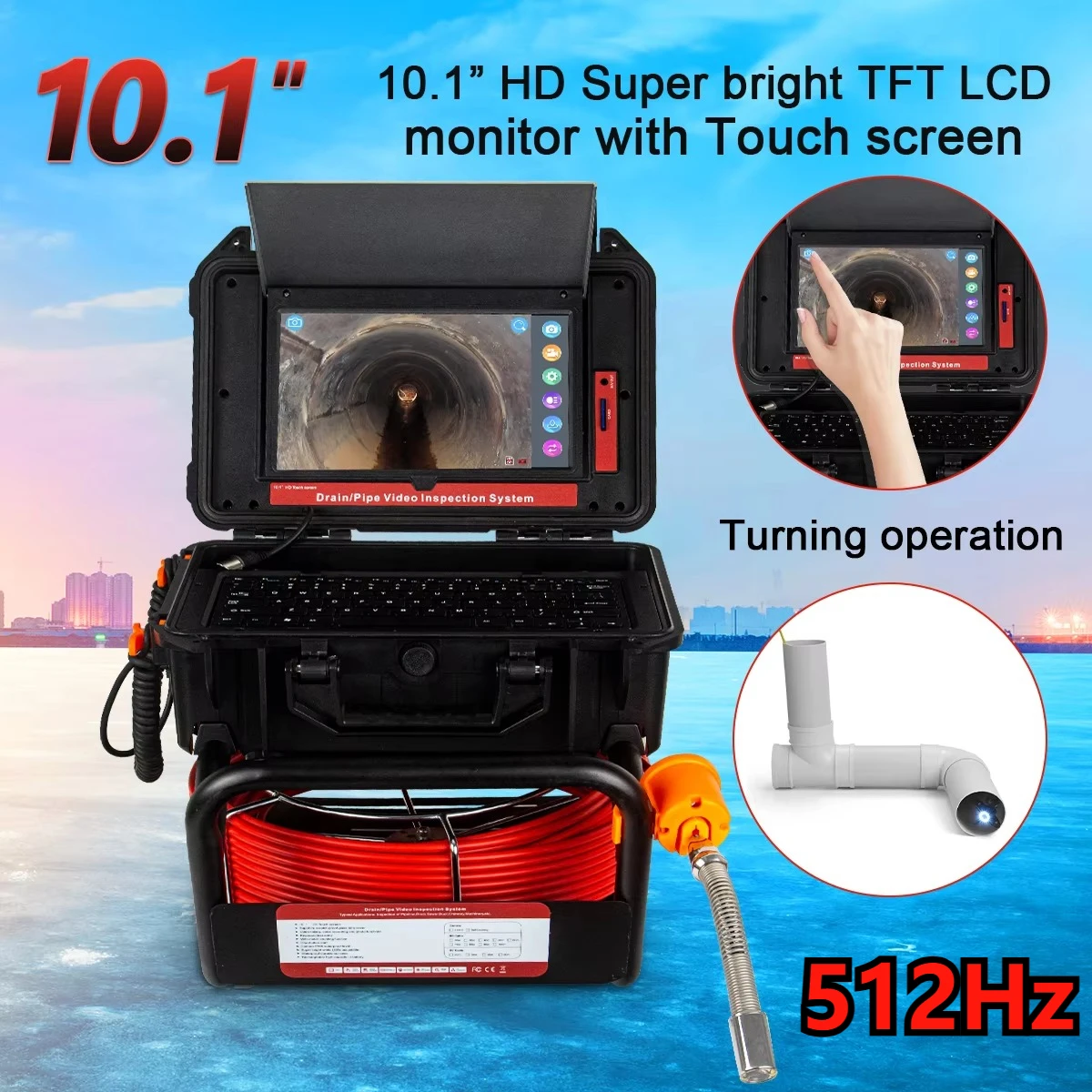 Sewer Camera with 512Hz Sonde Transmitter】Are you struggling with locating your pipe accurately? This endoscope camera kit with 512hz transmitter makes it easy. The pipe locators pinpoint the location quickly and 10.1 inch HD color monitor shows what is wrong with the sewer tunnels clearly. The plumbing camera perfectly solves the hard work of inspecting sewer lines, drains, wells, chimney, machinery, HVAC ductwork, tanks, railway, general building and any underground narrow environment.(Locator Receiver is NOT included)