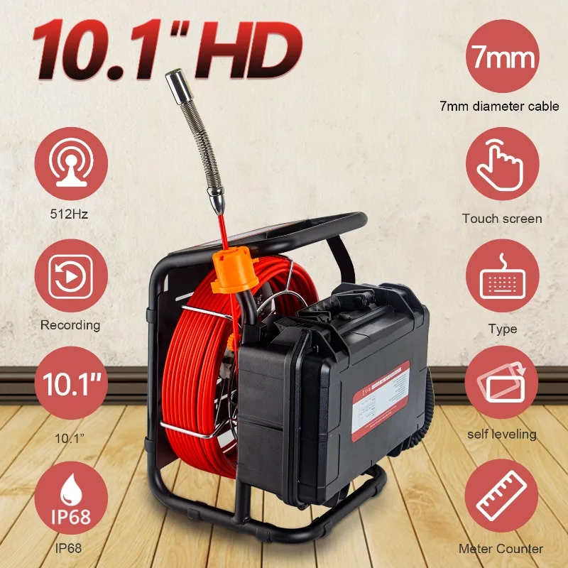 HD 1080P 10.1in Pipe Inspection Camera 512HZ Locator 10-50M Distanc Counter Self-Leveling Video Audio Recording Endoscop Camera