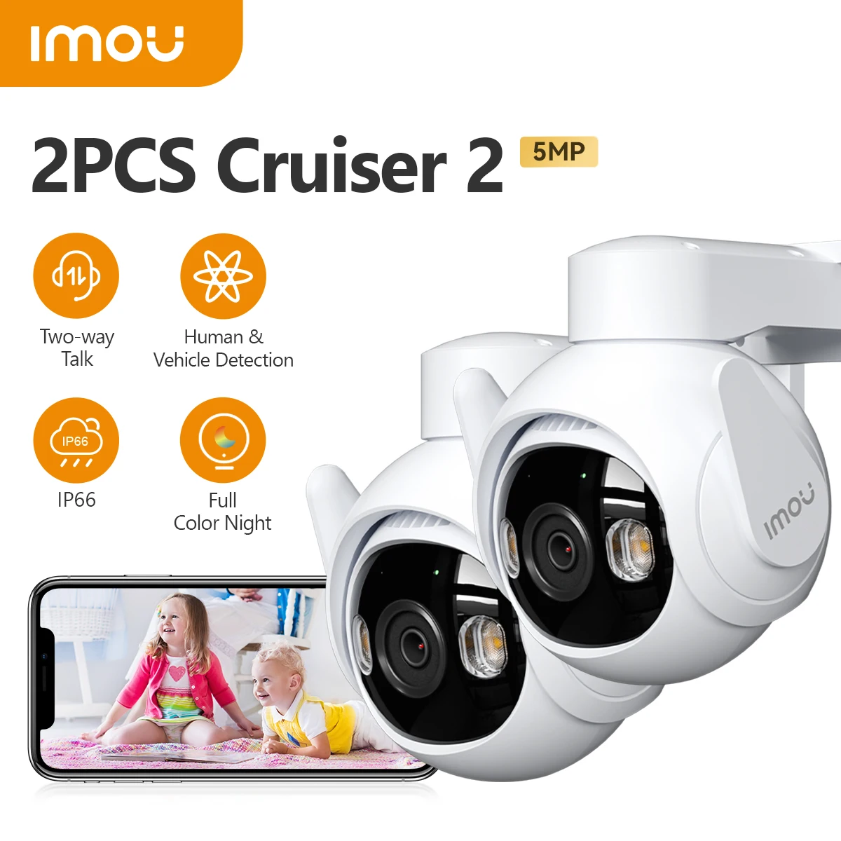 IMOU 2PCS Cruiser 2 5MP Wi-Fi Outdoor Safe Camera AI Smart Tracking Human Vehicle Detection IP66 Smart Night Vision Two Way Talk
