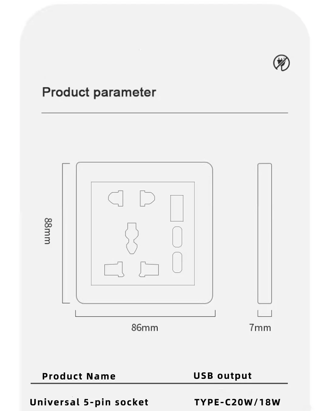 - Model Number: 20W Type-C 5P SOCKET