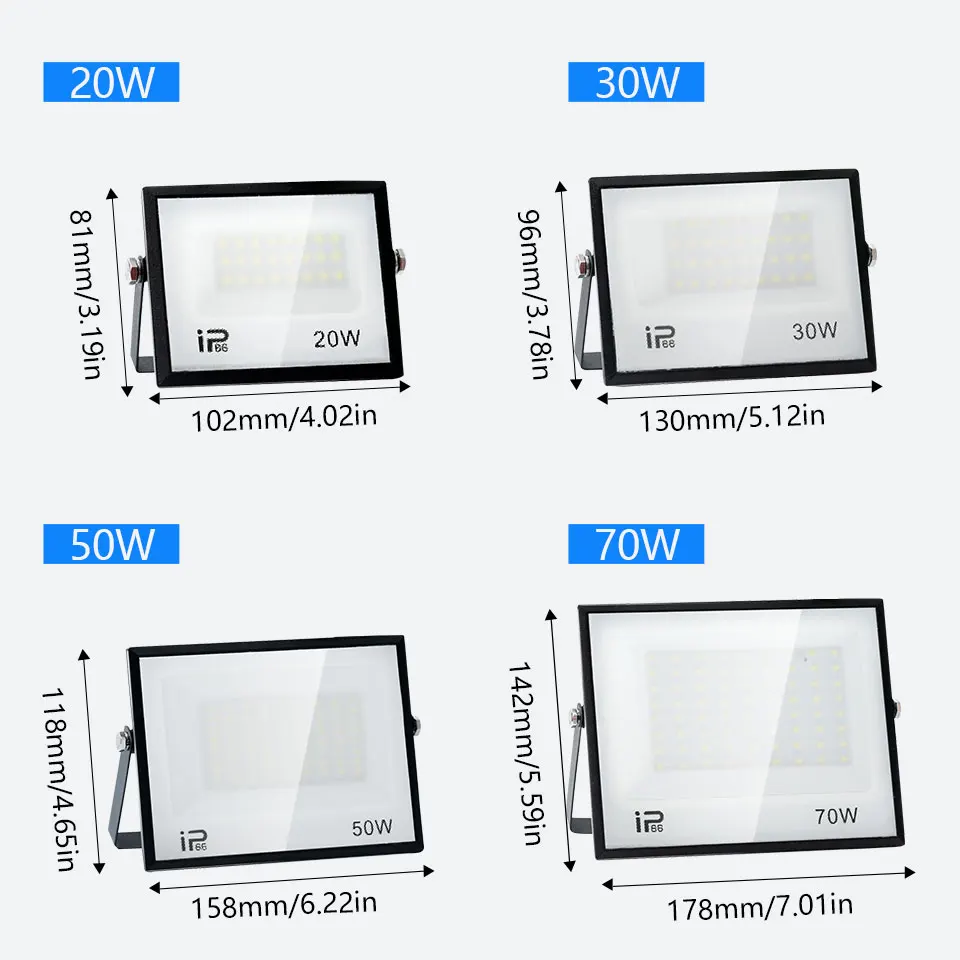 Be the first to review “IP66 LED Floodlight AC175-265V 20W 30W 50W 70W 100W 150W200W300W Waterproof Outdoor Projector Tempered Glass For Garage Lighting”