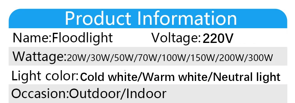 Specifications: Power: 20W/30W/50W/70W/100W/150W/200W/300W