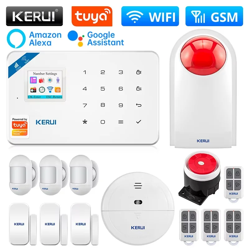 Arm and disarm KERUI Alarm with your voice and get mobile alerts about the Door/Window Open or smoke alarms