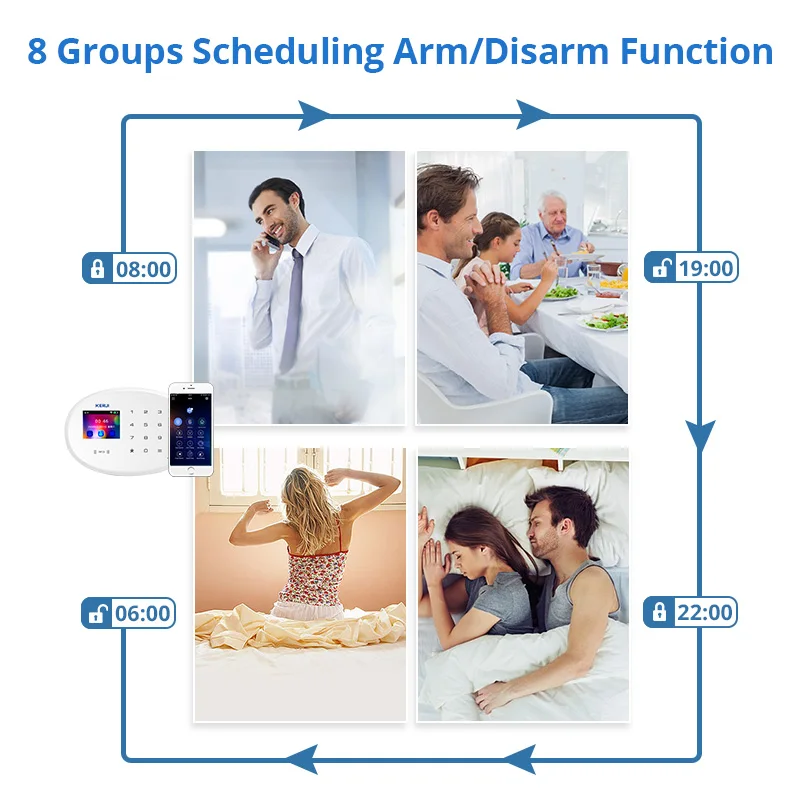With a free IOS/Android smartphone app, it can be easily controlled by arming, disarming, and home modes with also a simple remote control & RFID Card