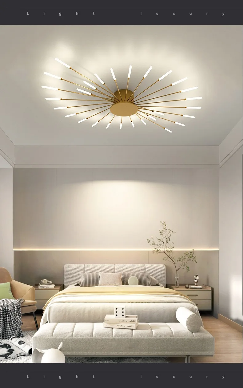 Led Firework Chandelier Dimmable For Living Room Bedroom Milk Yellow Ceiling Chandelier Dining Room LED Ceiling Lamp With Remote