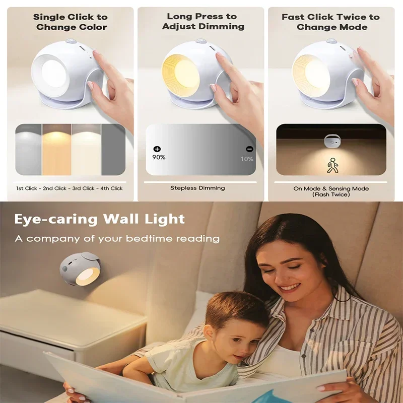 【Two energy-saving power supply】①With built-in 2000mAh rechargeable battery and 2 USB-C cables, the rechargeable wall lights for bedroom can be fully charged in 3 hours and last 10 hours at Max brightness. ②Runs on 3 AAA batteries. Forget to charge or don’t want to recharge the wall sconces battery operated frequently, put 3 AAA batteries at the back compartment and instantly restore lighting for lasting longer. Easily removed as a handy emergency light if needed.