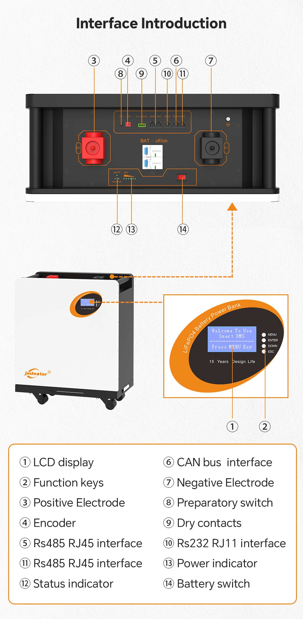– The external LCD screen is used to monitor the energy storage battery data and operating status in real time.