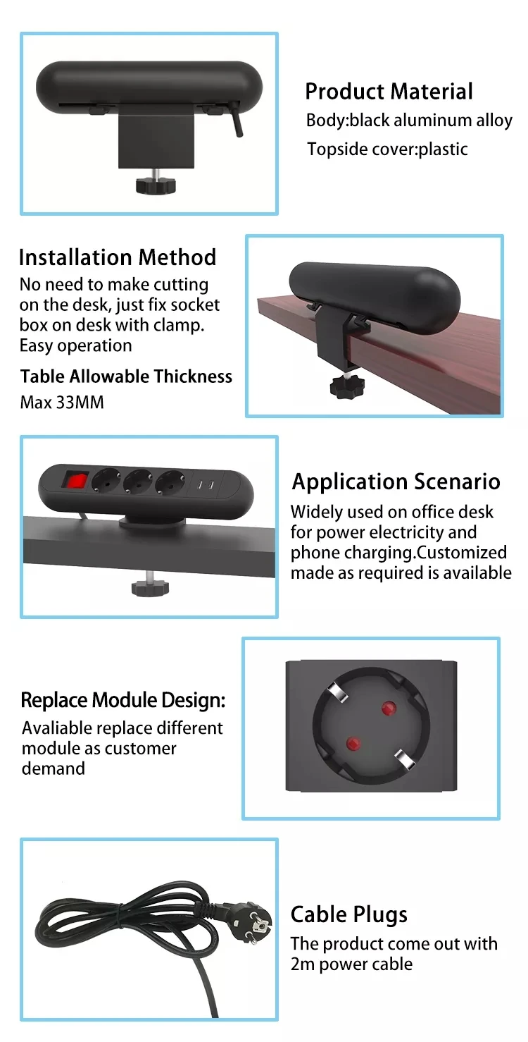 EU standard wireless charging smart power socket tableclip extension socket / power strip with usb