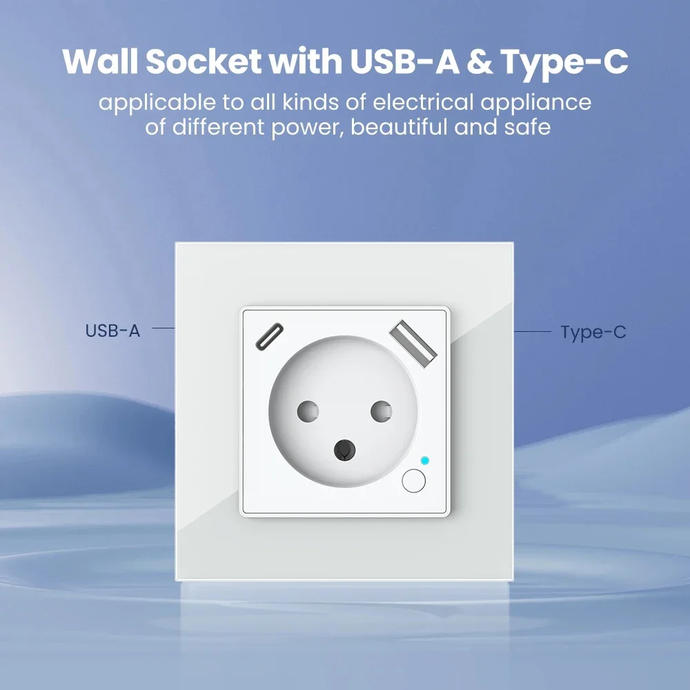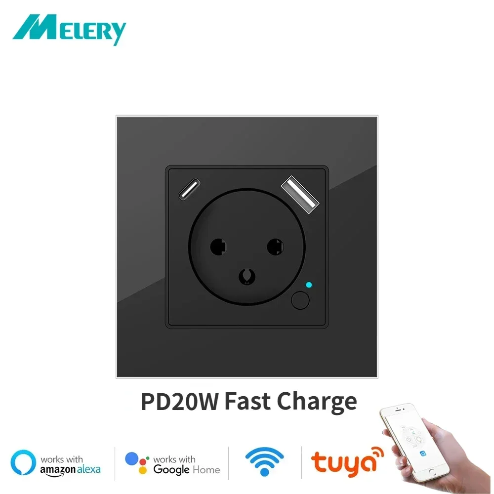 WiFi Tuya Smart Israel Wall Socket Israel Standard Power Plug Outlet USB/Type-C Charge Port Wroks With Alexa Google Home