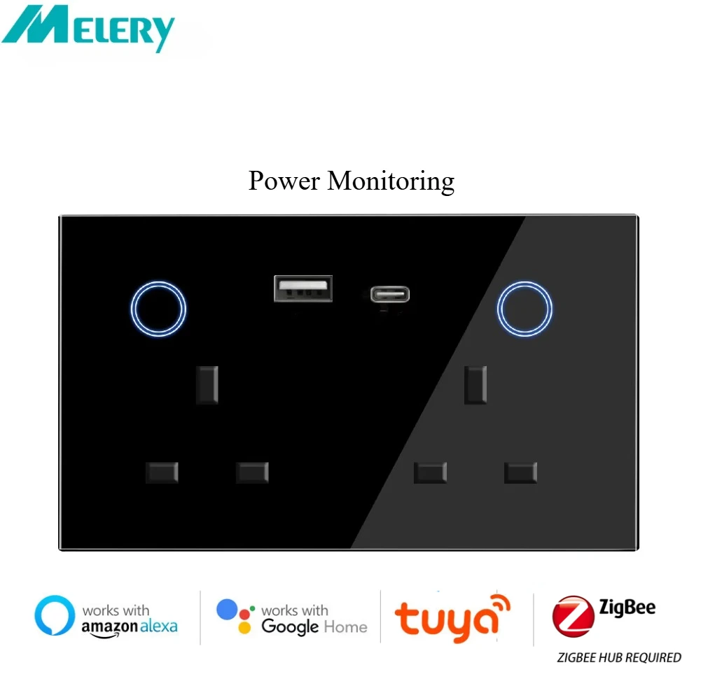 Melery PD 20W Type-c USB UK Zigbee Smart Wall Socket Touch Switch Plug Outlet Power Monitoring Remote by Tuya Alexa Google Home
