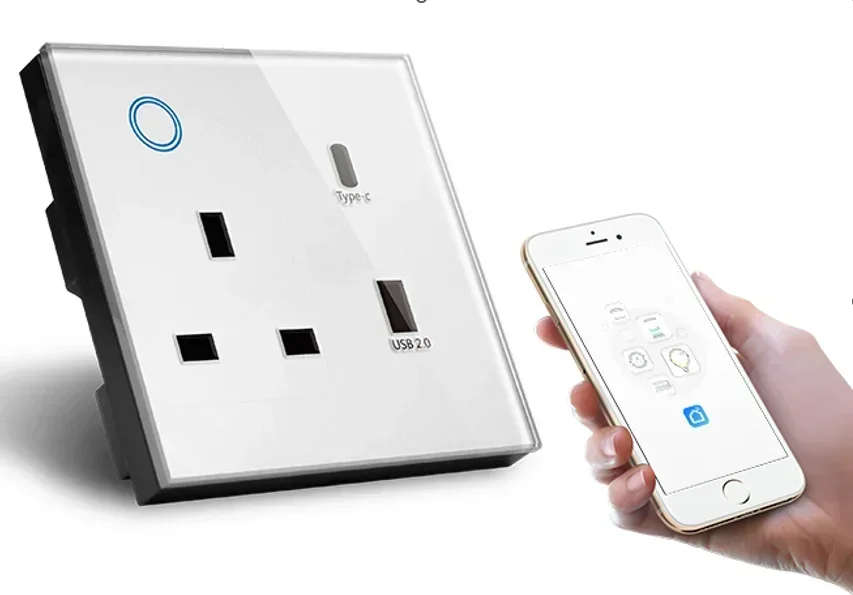 Melery WIFI Smart Tuya USB Type C PD 20W Wall Socket UK Plug Outlet Power Touch Switch Wireless Remote by Alexa Google Home