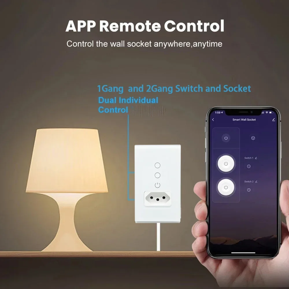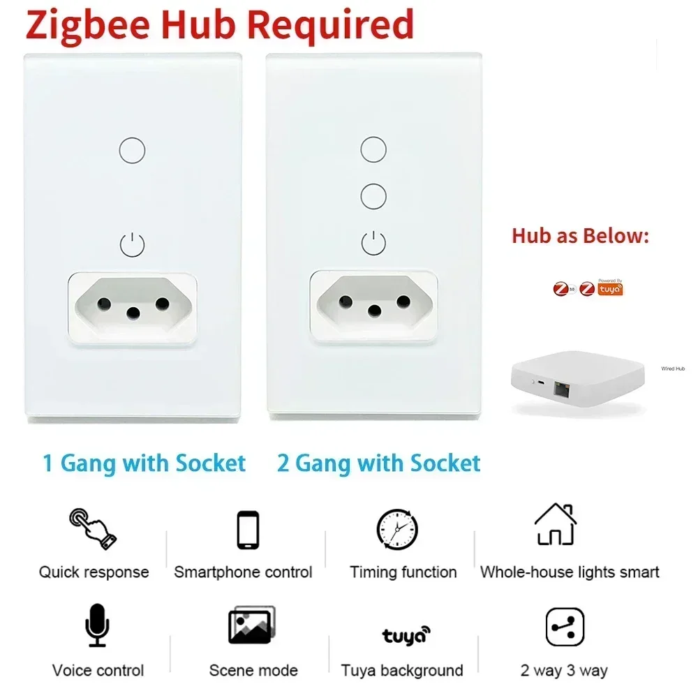 Smart Tuya Brazil Light Switch Wall Socket Electrical Brazilian Plug Brasil Outlet Glass Panel Intelligent Wireless Remote Control by Alexa Google Home Zigbee Signal Repeater