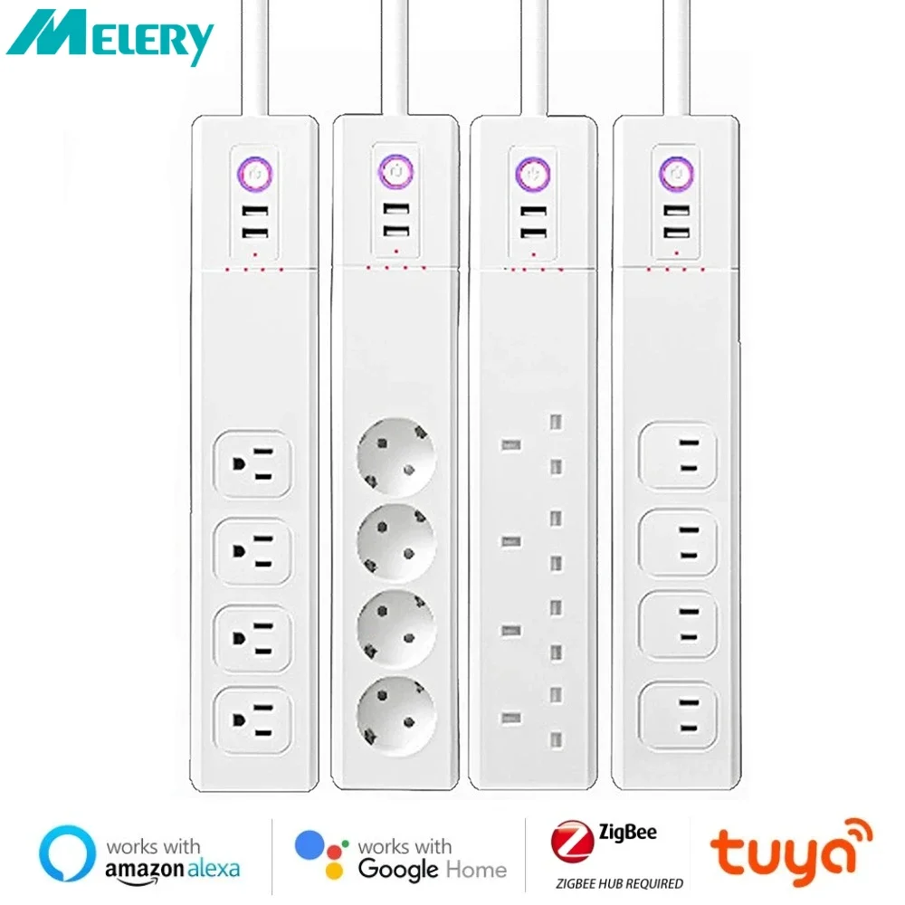 Zigbee Tuya Smart Power Strip surge protector EU/US/JP AC Outlets with 2 USB Extension for Alexa Google Home casa inteligente
