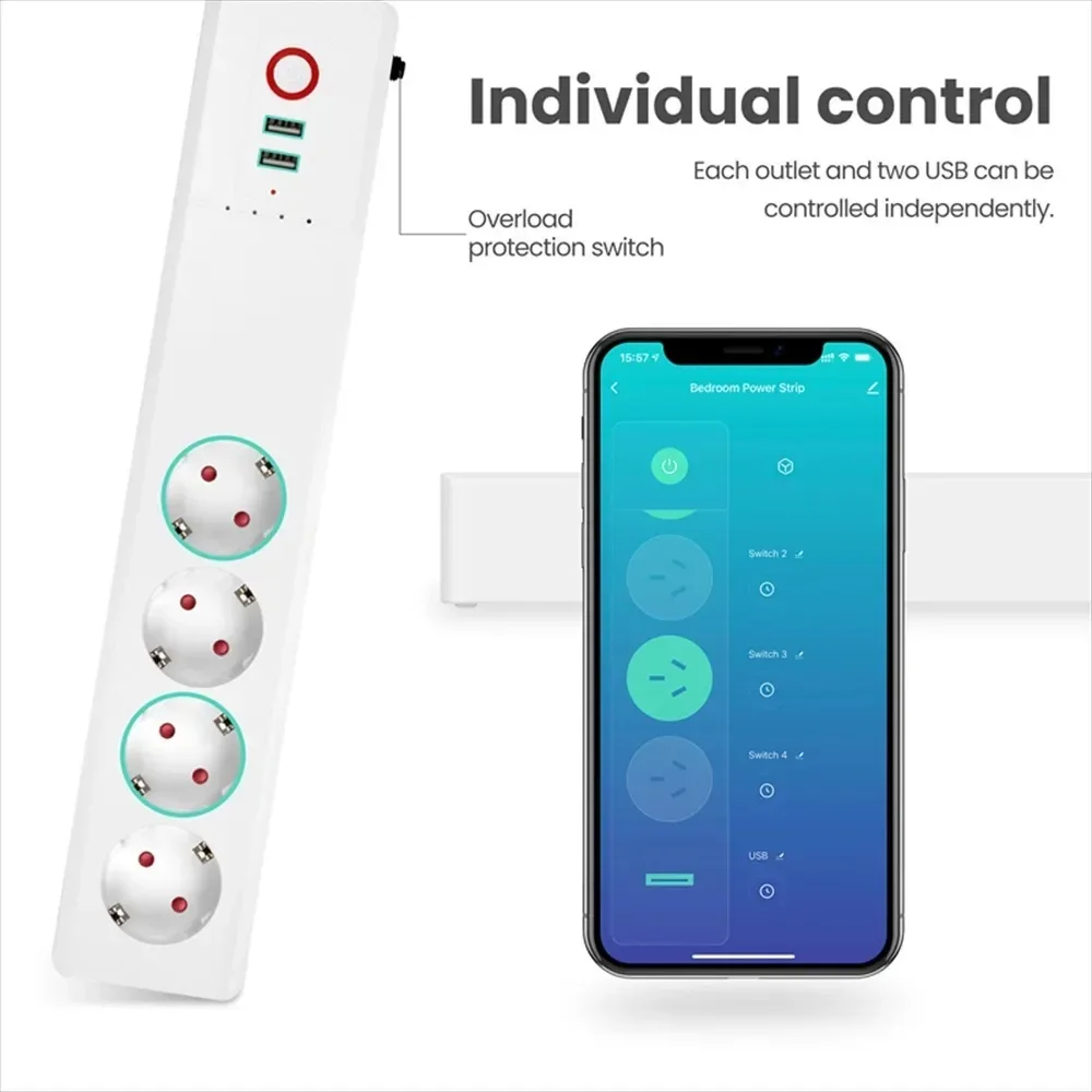 2. Remote Wireless Control: Use the full control mode or separate control mode to control 4 smart sockets with your smart phone through Wi-Fi/3G/4G network when you’re out of home, but the 4 USB port can only be controlled together.