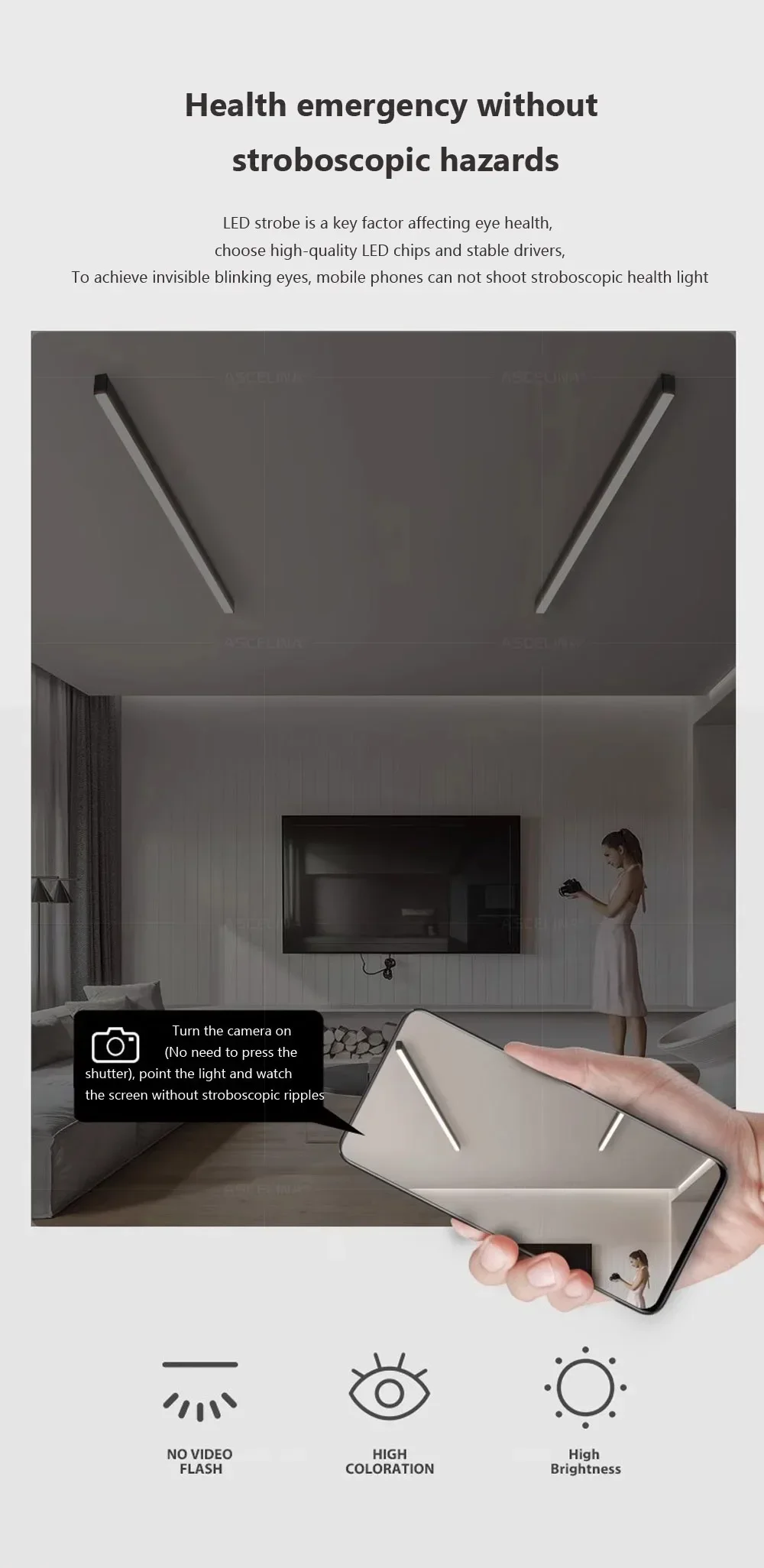 The product uses high color rendering light strips to make the colors more vivid, prominent, and soft without harming the eyes.