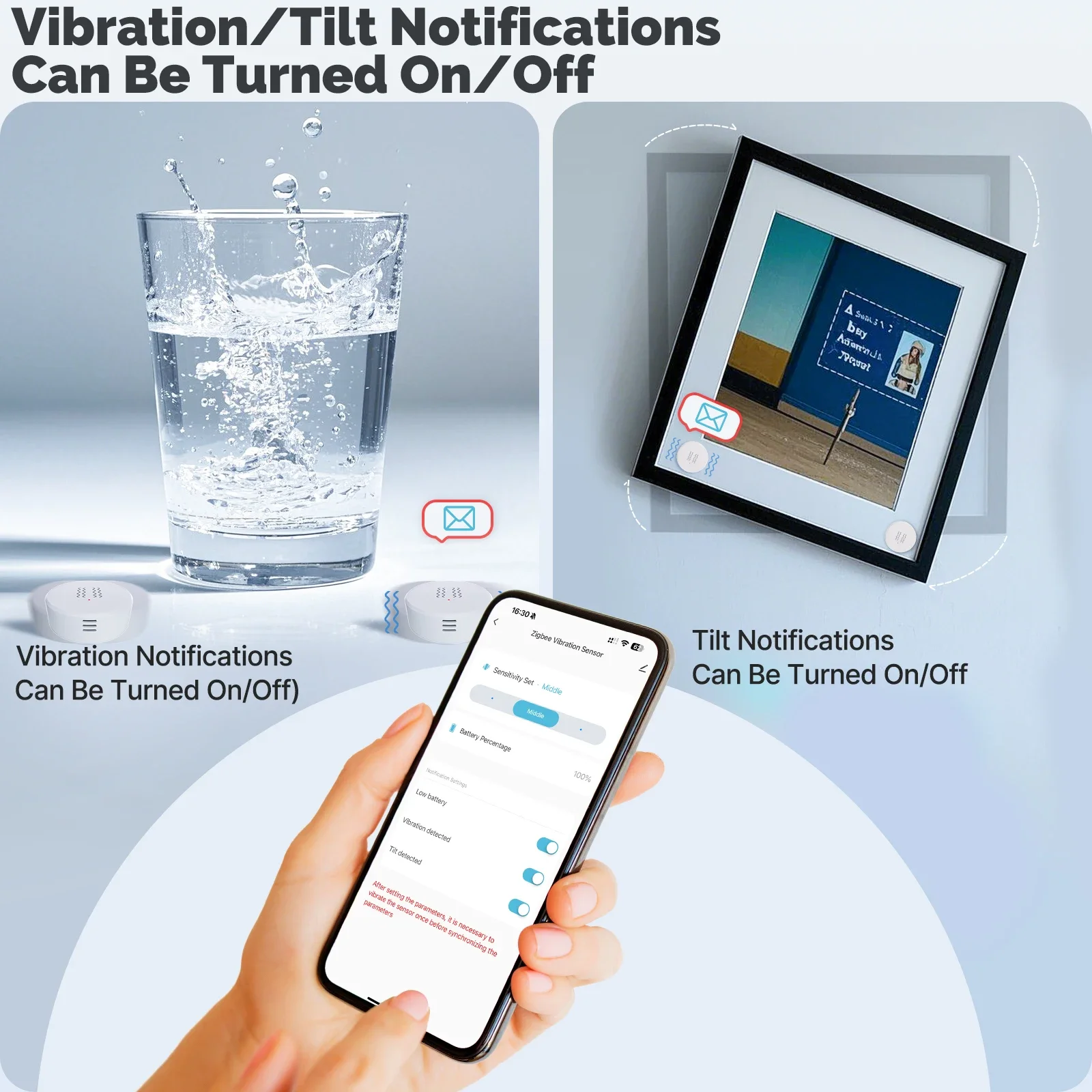 You can choose to receive vibration/tilt alerts based on your preferences, ensuring you won’t be disturbed by frequent notifications.